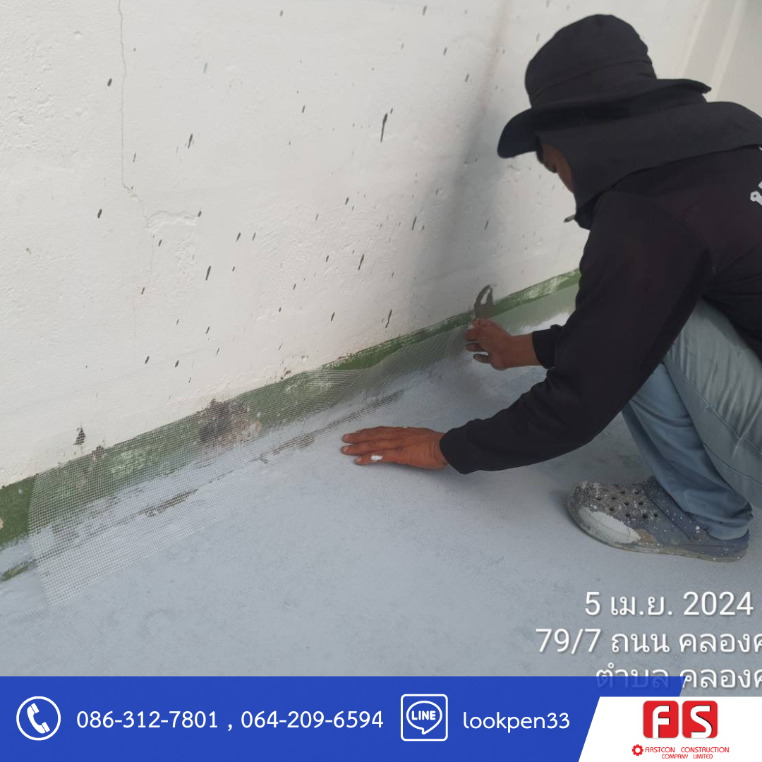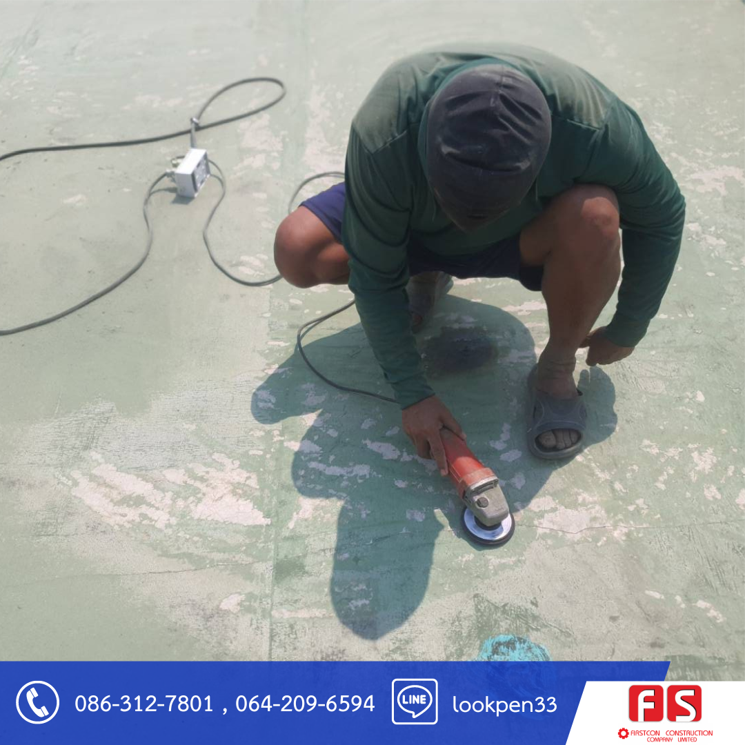 - รื้อกันซึมเดิมออก เตรียมพื้นผิวระเบียง