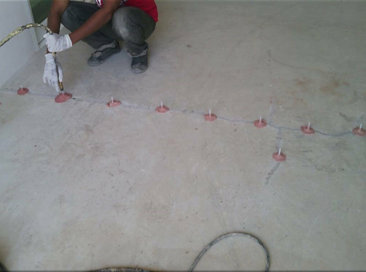 งานซ่อมรอยแตกร้าว Epoxy Injection ใช้วัสดุอีพ็อคซี่เรซิ่นที่มีความหนืดต่ำให้ค่ากำลังอัดสูง ปราศจากสารทำละลายประกอบด้วยส่วนผสม 2 ส่วน